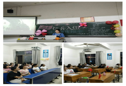 2018年5月23日晚,外国语学院2017级各班在播馨楼举行了以“征兵入伍宣传”为主题的班会。