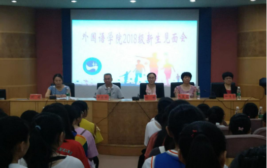 9月11日上午,外国语学院在养根楼报告厅举行2018级新生开学典礼。全体院领导申忠明、胡瑾、刘莉、朱芙蓉、卿逸豪,博士代表刘晓东、邓梦林、胡靓,办公室老师、辅导员、新生班主任与2018级全体新生出席。典礼由党总支副书记刘莉主持。