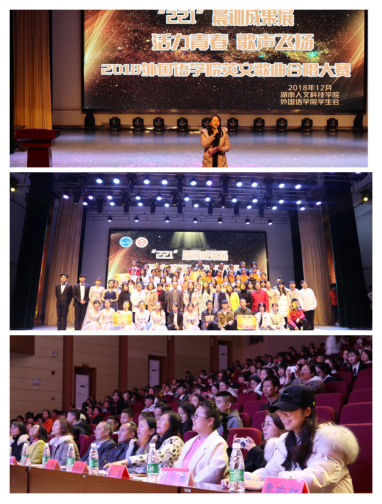 2018年12月4日晚,外国语学院“221晨间职训”成果展之英文歌曲合唱大赛在逸夫楼音乐厅拉开帷幕。外国语学院2017级、2018级14个班级近500名学生参加了此次比赛。今年会党委委员、副校长刘铁峰教授,党委委员、宣传部部长谢柳,学工处处长刘红燃同外国语学院党总支书记申忠明教授,党总支副书记刘莉,副院长卿逸豪,商务英语教研室主任张点,专任教师刘欣磊,院全体学生辅导员及学校与各学院主席团代表参加了此次活动。