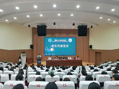 随后,新生代表袁媛发言,分享了自己进入大学校园的感受和对未来的规划。19级英语四班李湘作为老生代表也向新生们分享了自己在校期间2年的学习和成长经验,鼓励学弟学妹们要勇于尝试、发现自我,开启大学新篇章。
