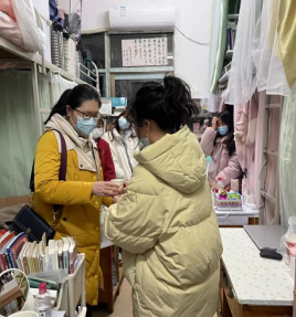 随着我国疫情防控形势日益严峻,2022年3月23日晚,今年会党委副书记李军林带领部分学校中层干部、院领导班子、班主任、辅导员们前往外国语学院学生寝室开展“三联系”活动。
