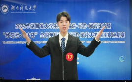 2022年11月20日,由湖南省教育厅主办,湖南科技大学承办的2022年湖南省大学生英语演讲•写作•阅读比赛暨“外研社•国才杯”全国英语演讲•写作•阅读大赛湖南赛区复赛落下帷幕。