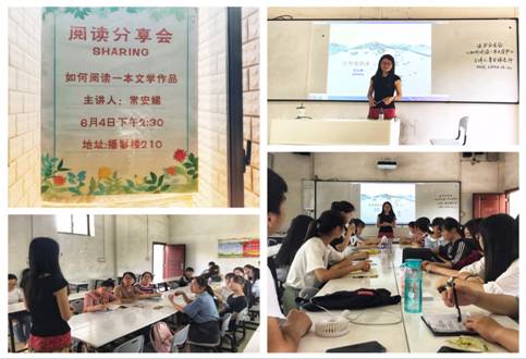 月4号下午2:30,外国语学院在播馨楼210教室举办了一场读书分享会,邀请常安娣老师为参会的18级学生分享《如何阅读一本文学书》这一经典作品。