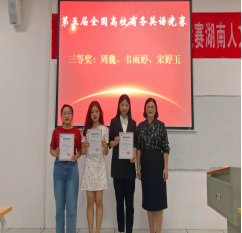 2021年5月23日外国语学院组织了第五届全国高校商务英语竞赛初赛,选拔了商务英语专业2018、2019级陈巧丽、宋婷玉、邓昌美、许俊、周魏、黄利宇、韦雨婷7名选手参加决赛。在2021年5月30日的第五届全国高校商务英语决赛中,外国语学院王春晖老师指导的商务英语专业2019级陈巧丽和2018级邓昌美同学荣获二等奖,商务英语专业2018级周魏、韦雨婷、宋婷玉同学荣获三等奖,王春晖老师荣获优秀指导老师奖。