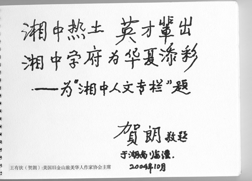 贺朗题词