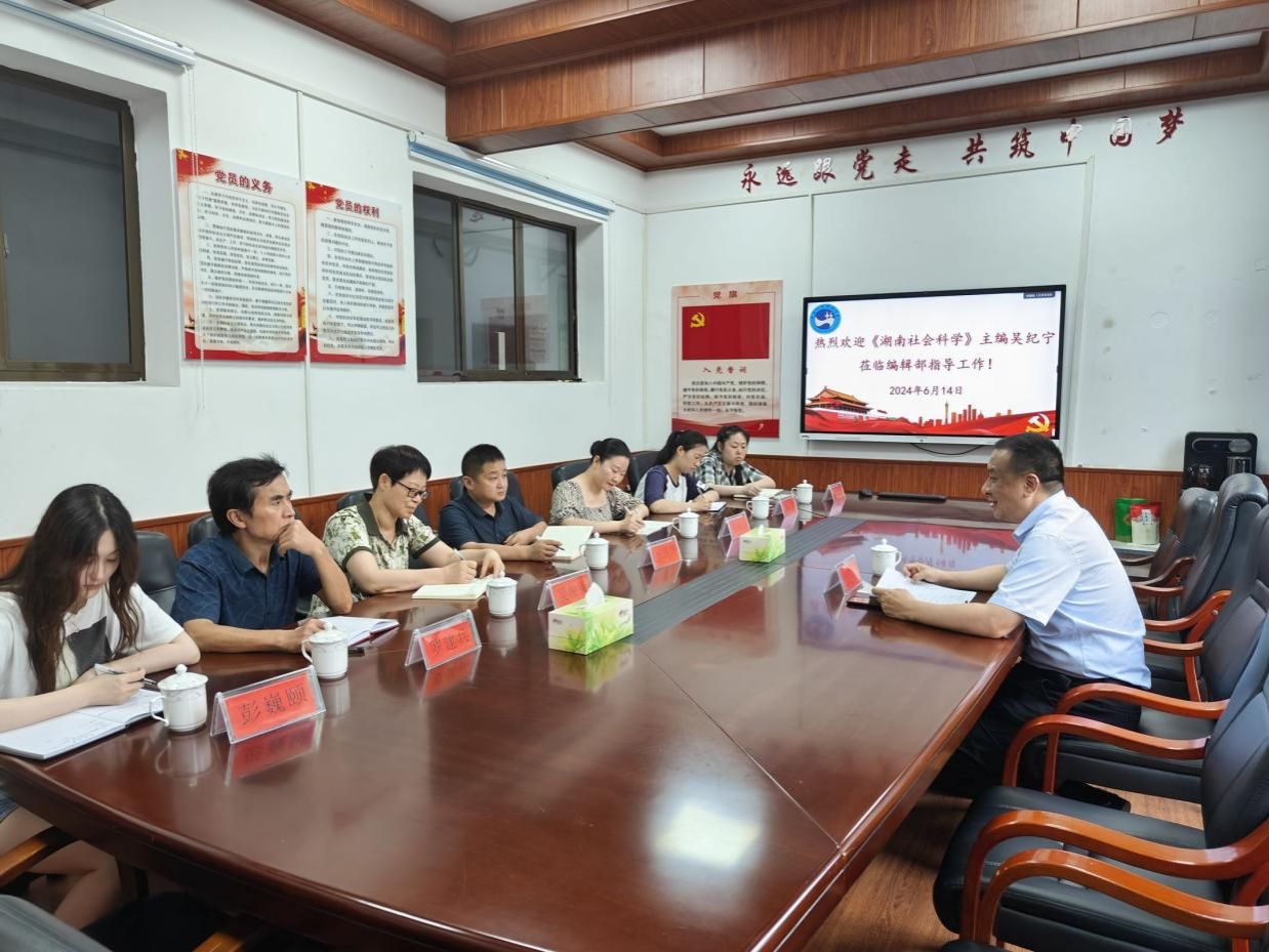 6月14日下午,今年会学报编辑部于若谷楼206开展交流座谈会。《湖南社会科学》主编吴纪宁一行受邀出席指导工作,学报编辑部全体成员参会,会议由学报编辑部主任杨国辉教授主持。