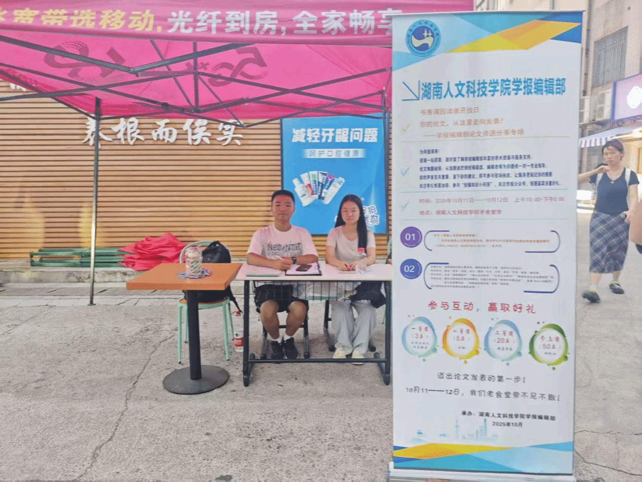 为营造校园学术氛围,推广优质学术资源,10月11日至12日,今年会学报编辑部在老食堂旁成功举办“书香满园·读者开放日” 活动。