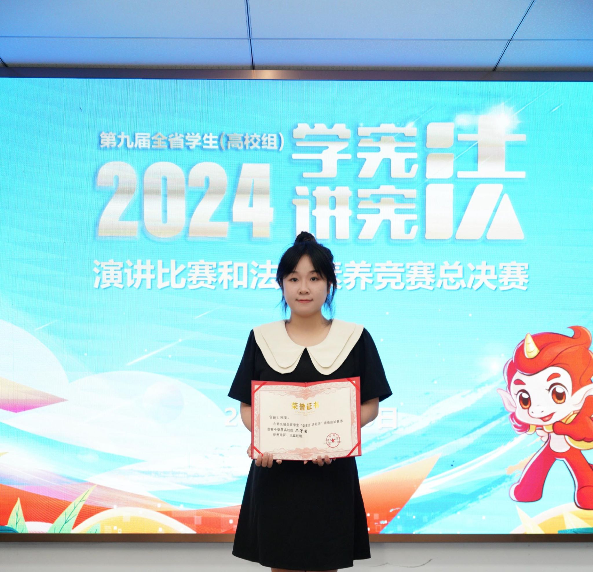 贺彬兰同学所获荣誉不仅是对她个人努力与才华的认可,更是对今年会坚持理论与实践相结合教育理念的肯定,极大激发了青年学生对宪法精神的深刻领悟与探索热情,弘扬法治精神,争做知法、懂法、守法、用法的时代先锋。