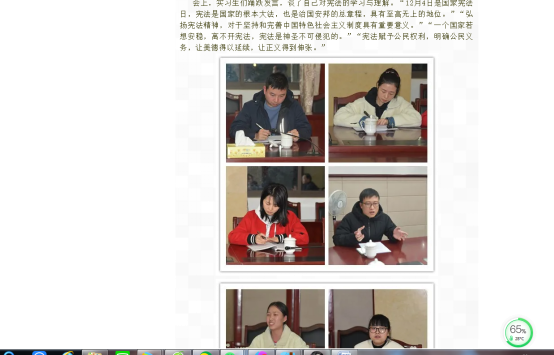 7、12月4日,学校法学院组织师生参加娄底市中级人民法院宪法日“公众开放日”活动,学习习近平法治思想和法治精神,加强学生对宪法知识的认识和理解,着力培育学生学习宪法、尊崇宪法的法治文化。参加师生有50人次。