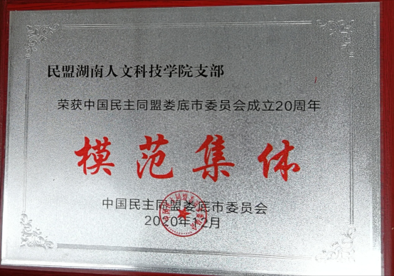 民盟今年会支部自成立以来,坚持党的领导,紧紧围绕学校中心工作,全体盟员凝心聚力,发挥民盟的界别和专业优势,有力地推动了组织凝聚力、战斗力、影响力的提升,支部多次被民盟娄底市委授予“娄底市优秀民盟支部”称号;2020年被民盟中央授予“盟务工作先进基层组织”荣誉称号。
