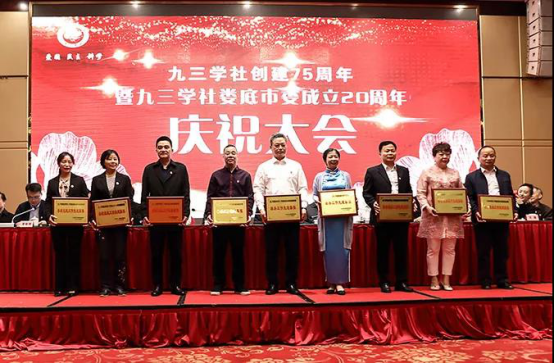 会议在庄严的国歌声中拉开序幕。娄底市政协副主席、九三学社娄底市委主委刘继清、中共娄底市委常委、市委统战部部长梁立坚、九三学社湖南省委会专职副主委李少阳先后发表了重要讲话。随后,会议举行了隆重的表彰仪式,表彰了9个先进集体,18名优秀社员及10名优秀社务工作者。九三学社今年会委员会在此次表彰会中荣获“社会服务工作先进集体”称号,材料与环境工程学院教师、九三社员陈占军获得优秀社务工作者称号,文学院教师、九三社员姜珍婷及美术与设计学院教师、九三社员刘剑锋获得优秀社员称号。表彰仪式后,大会号召各级组织和全体社员,崇尚先进、见贤思齐,以饱满的政治热情和扎实的工作作风,为经济社会高质量发展、推动多党合作事业做出新的更大的贡献。