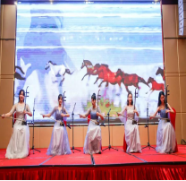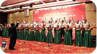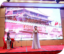 纪念会议后,社员们欢歌载舞,为九三学社华诞奉献了一场精彩纷呈的文艺汇演,文学院教师、九三社员陈茜茜担任此次节目的主持人。九三学社今年会委员会一共选送了三个节目,其中与涟钢支社一起排演的大合唱《祝酒歌》作为汇演的第一个节目,以其欢快高昂的基调将庆祝活动拉入了欢乐的氛围,随后音舞学院教师、九三社员石瑾主奏的二胡合奏《战马奔腾》以其激奋昂扬、节奏铿锵获得了全场热烈的掌声,而后音舞学院教授、九三社员梁金平深情满满、高亢悠长的独唱《祖国,我的最爱》则把全场的气氛推向了高潮。最后,文艺汇演在优美大气的合唱《我和我的祖国》中圆满落幕。