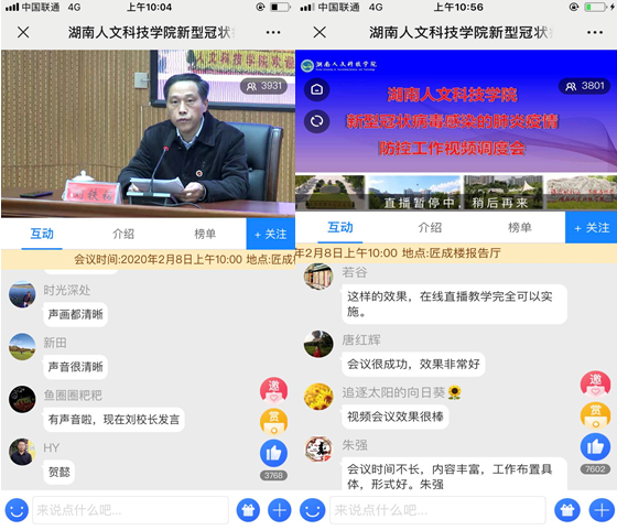 党委书记郭军表示,疫情发生以来,学校深入贯彻落实习近平总书记、党中央关于抗击新型冠状病毒感染的肺炎疫情防控工作的重要指示精神,全面落实教育部和省委、省政府及省教育厅、娄底市委政府的工作部署,在疫情防控上做了大量有成效的工作,目前学校疫情防控整体情况良好。