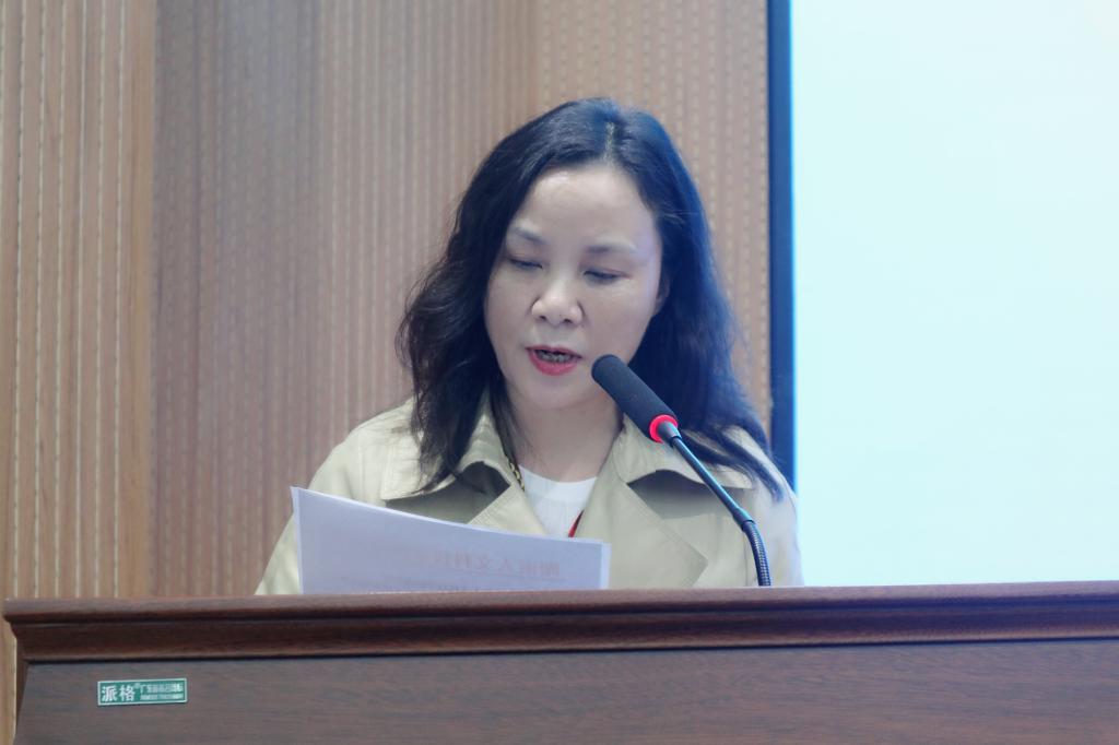 副校长石潇纯宣读关于成立瑞立视VR智能学院的文件