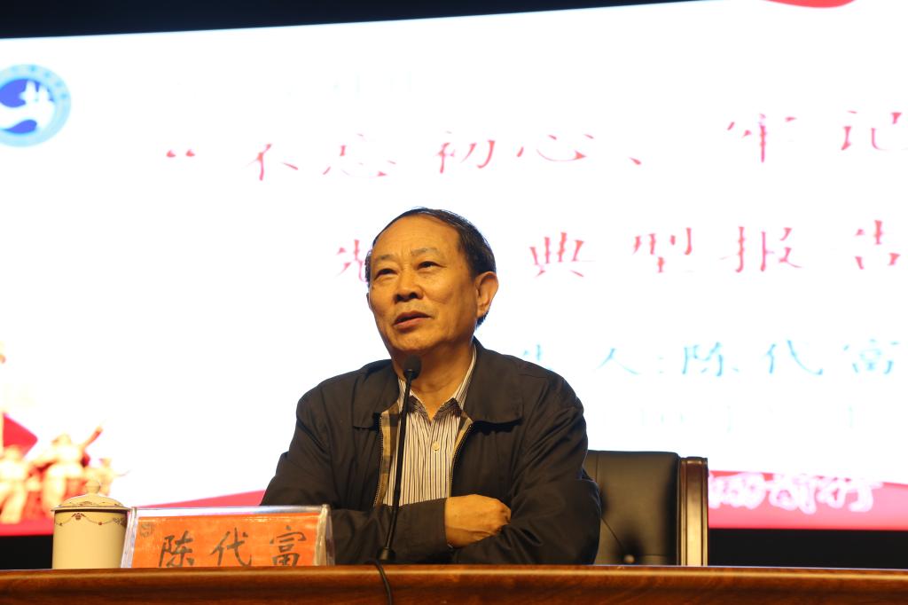 10月23日,湖南博长控股集团有限公司、冷水江钢铁有限责任公司董事长、党委书记陈代富同志应邀来今年会做“不忘初心、牢记使命”先进事迹报告。参加报告会的有学校党委班子成员,学校全体教师党员和部分学生党员代表。党委副书记刘铁铭主持本次报告会。