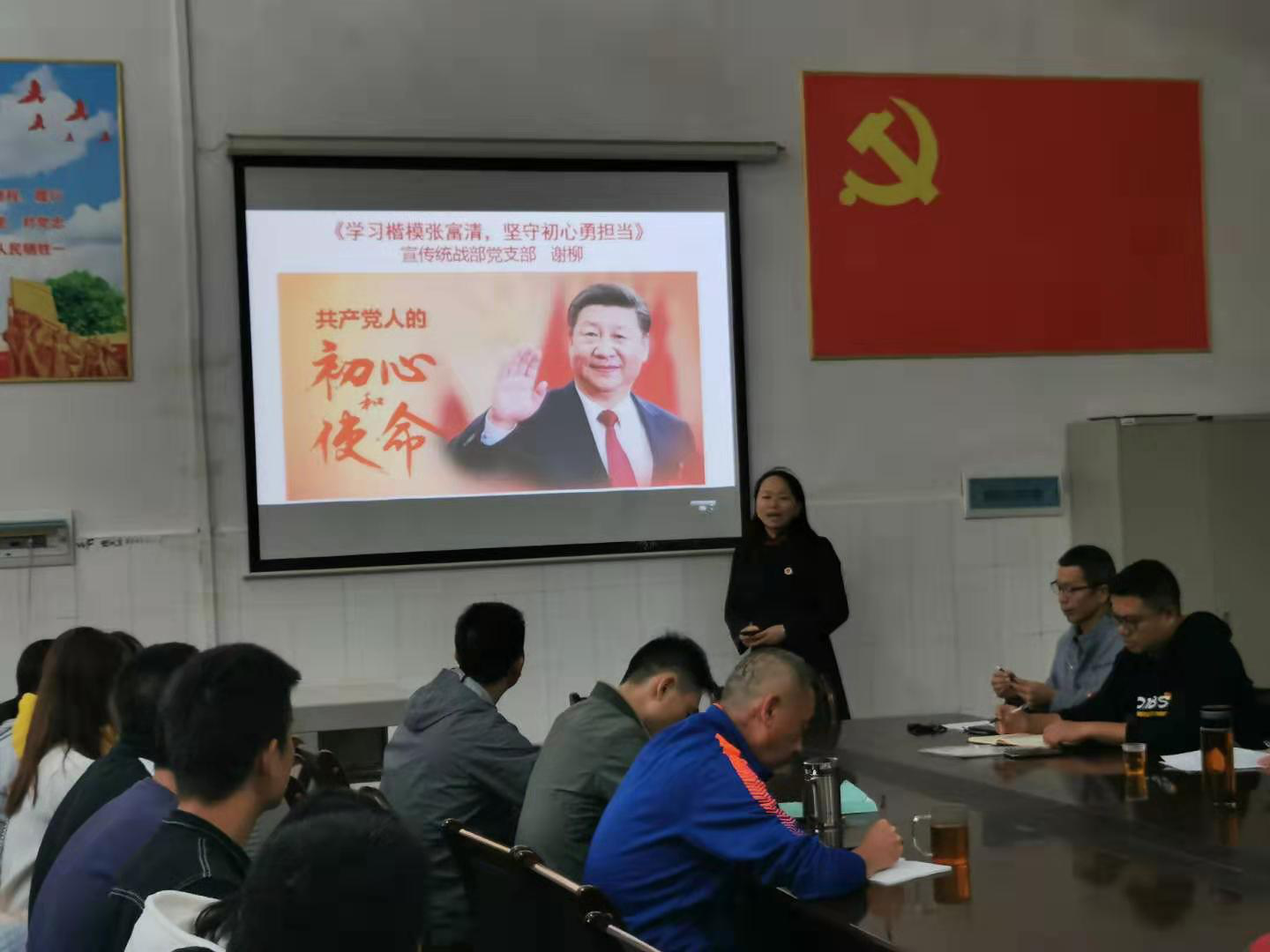 党课共分为“学习楷模张富清”“共产党员的初心和使命”“共产党员勇于担当”三个部分。谢柳首先给大家分享了共和国勋章获得者张富清同志的英雄事迹,讲述了老英雄张富清60多年深藏功名,一辈子坚守初心、不改本色、对党忠诚的感人事迹。她讲到,作为一名共产党员,要以张富清同志为标杆,深入学习张富清同志对党忠诚、不忘初心的革命本色;学习他淡泊名利、艰苦朴素、廉洁齐家的高尚品德。如何担使命,履职责?谢柳认为要弘扬红船精神,站在时代的新起点,立足岗位,勇于担当,继续发挥共产党员先锋模范作用,为办好人民满意的大学而奋斗。