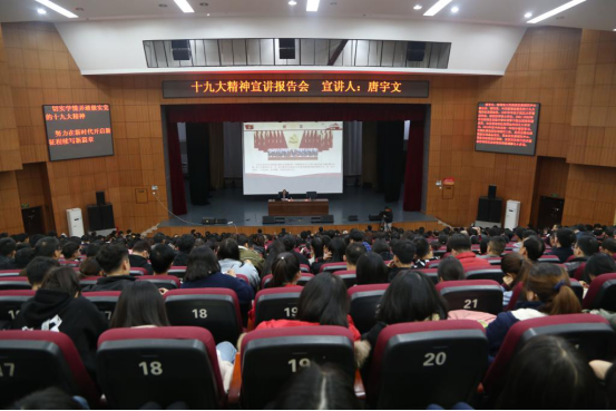 11月28日下午,省委党的十九大精神宣讲报告会在今年会逸夫楼音乐厅举行。湖南省人民政府发展研究中心副主任、研究员、中共湖南省委党的十九大精神宣讲团成员唐宇文作宣讲报告。党委书记郭军主持报告会。