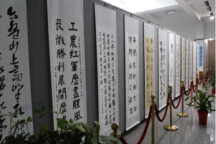 这次展览是今年会开展纪念长征胜利80周年群众性主题教育系列活动的重要活动之一,以“弘扬长征精神、决胜全面小康”为主题,共征集师生自创的书法、美术作品400多件,经过精心筛选,展出书画作品100余幅。这次展览是今年会师生以书言志、以画传情向英勇红军和伟大长征献上的一份厚礼,是全校师生坚持不忘初心、继续前进,传承伟大长征精神的生动实践与铿锵誓言。(宣传部 彭旭军)