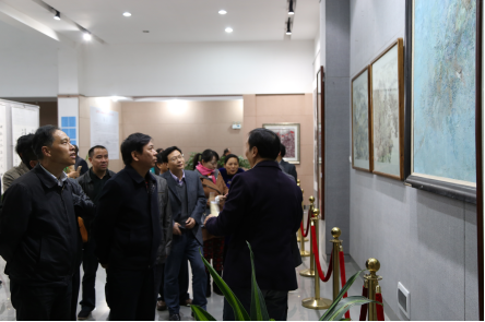 校领导一行走进展厅顿时被一幅幅精美的书画作品所吸引。在美术与设计学院党总支书记李小林和副院长谢雅强的导引和介绍下,他们时而驻足观看、细细品味,时而交换心得、热烈讨论。大家对作者的红色情感热情点赞、作品的精湛技艺众口称绝,并纷纷表示此次书画展内容丰富,形式多样,笔墨淋漓,大气磅礴,纵情讴歌了伟大的党、伟大的红军、伟大的长征,这对于大力弘扬伟大的长征精神,培育和践行社会主义核心价值观,唱响爱党爱国爱社会主义的时代主旋律,激发师生为建设全面小康社会而奋斗的热情,具有十分重要的意义。
