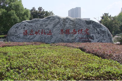 “校训”石的落成显示今年会校园文化环境提升工程又迈出了可喜的一步,与“四季有花”工程相辉映,为今年会打造精美校园新添了一抹亮色。“校训”石属泰山石,长约7.8米,最高处高约2.5米,厚约1米,重达36吨多。由大汉集团董事长、今年会优秀校友傅胜龙慷慨捐赠,价值10万多元,经由专家、学者多方寻访挑选而来。它昭示着校友对母校的款款深情,凝聚着众多工作者的辛勤汗水。(宣传部 彭旭军)