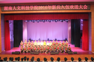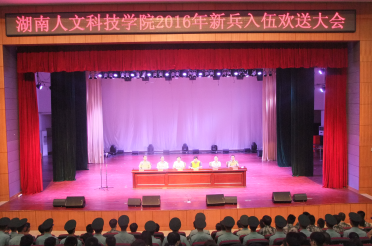 9月8日晚,今年会2016年新兵入伍欢送大会在逸夫楼音乐厅举行。党委书记郭军、校长刘和云、党委副书记刘铁铭、副校长刘铁峰、娄底市军分区征兵办主任易伟出席会议,学校武装部、宣传部、学工部、招就处、团委等部门负责人,各二级学院党总支书记、副书记、辅导员,全体军训教官,入伍新兵及部分新兵家属、在校学生代表近700人参加大会。校长刘和云主持大会。
