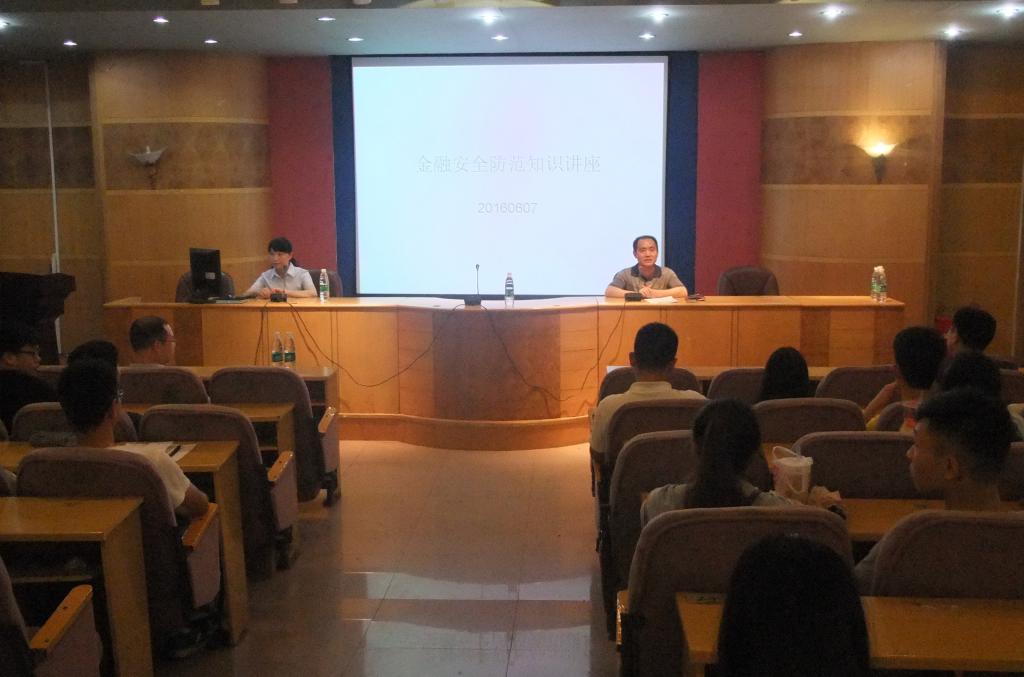 曾曦君从人民币真假识别、银行卡和存折的正确使用、电子银行产品的安全使用以及诈骗短信的防范等方面给同学们做了详细讲解。刘康珍就网络安全防护知识作了生动阐述,他建议同学们要增强网络安全意识、谨防诈骗、适度消费、慎重使用校园借款和公共WIFI。郭湘军列举了几例日常生活中常见的网络金融诈骗案例,强调了保持良好信用记录的重要性。