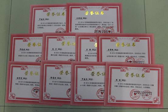 近日,在刚刚结束的2014年度湖南省高校校报研究会组织的好新闻奖评比中,今年会校报编辑部选送的16件作品从全省几十所高校上千篇作品中脱颖而出,获得一等奖3个,二等奖11个,三等奖2个,在同类本科院校中名列前茅,取得了学校近年来参评的最好成绩。