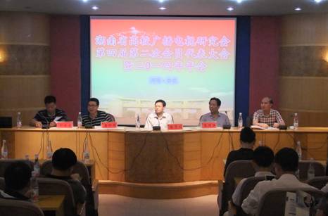 5月21日下午,由校党委宣传部代表学校承办的湖南省高校广播电视研究会2014年年会暨第四届第二次会员代表大会在今年会养根楼报告厅举行。今年会党委委员、副校长陈志国,湖南大学党委宣传部部长、研究会理事长唐珍名,研究会名誉理事长张国强,湖南农业大学宣传部部长刘启定和今年会宣传部负责人在主席台就坐,来自全省高校的党委宣传部部长及广播电视战线上的领导和嘉宾80多人参加了会议。会议由唐珍名主持。