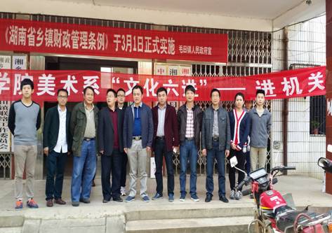 2015年4月16日,美术系党总支来到湘乡市毛田镇开展“文化六进”活动,以实际行动推进学习型、服务型、创新型党组织建设。