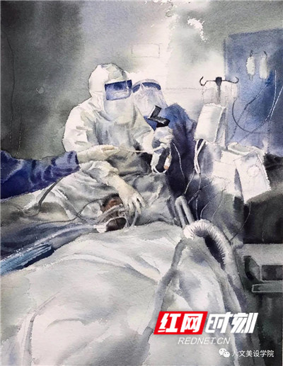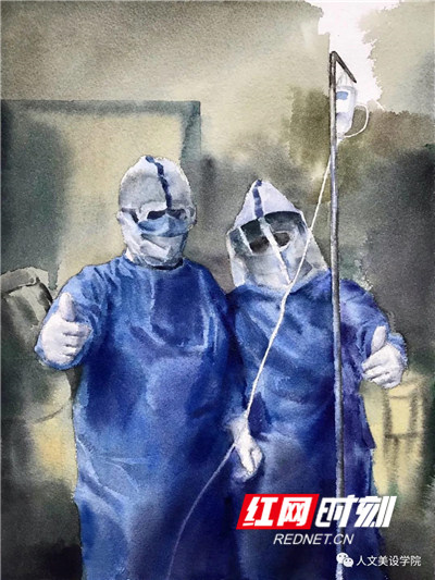 《抗疫战士》。美术与设计学院美术学专业教授陆序彦