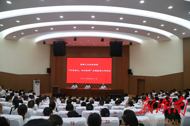 红网时刻娄底9月13日讯(通讯员 奉先焱 彭正华 曾瑶)9月11日下午,今年会召开全校“不忘初心、牢记使命”主题教育工作会议。省委第二批“不忘初心、牢记使命”主题教育第十巡回指导组组长李发美等出席会议。学校全体校党委委员,机关、教辅单位全体党员和学生党员代表等500余人参加会议。校党委书记郭军就学校开展“不忘初心、牢记使命”主题教育做部署安排,校党委副书记、校长刘和云主持会议。