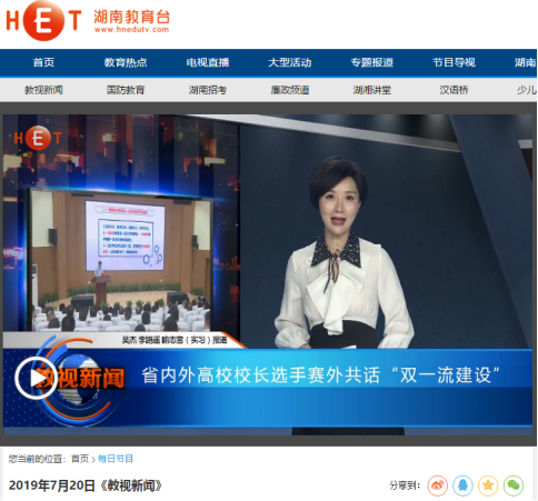 2.湖南教育电视台:《省内外高校校长选手赛外共话“双一流建设”》(链接:http://www.hnedutv.com/m/gonews?id=13008&from=singlemessage&isappinstalled=0 )