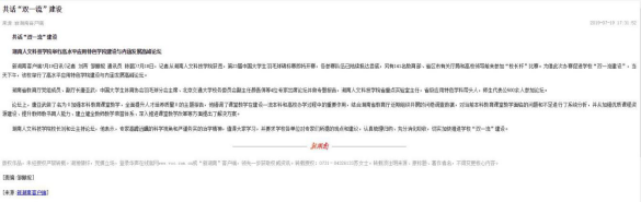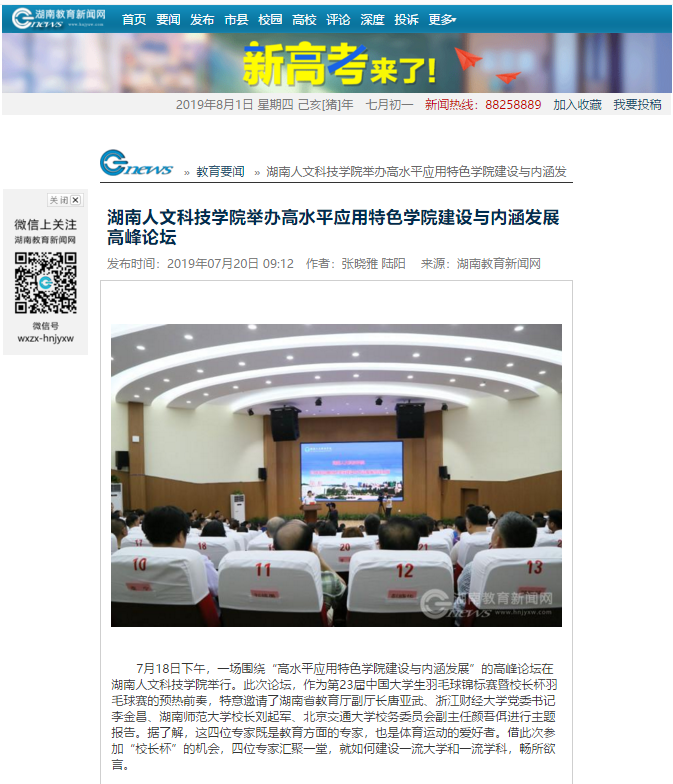 1.新湖南客户端:《共话“双一流”建设今年会举行高水平应用特色学院建设与内涵发展高峰论坛》(链接:https://m.voc.com.cn/wxhn/article/201907/201907191731523671.html?from=singlemessage&isappinstalled=0 )