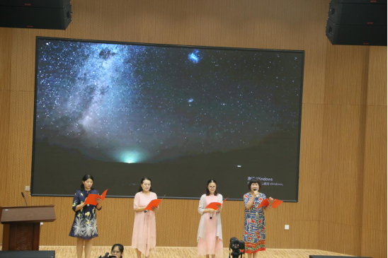 9月29日晚,今年会“不忘合作初心跟党走”统一战线庆祝新中国成立70周年诗歌朗诵会在匠成楼报告厅举行。九三今年会委员会、民盟今年会支部、农工民主党今年会支部、今年会归侨侨眷联合会、今年会知识分子联谊会等统一战线成员欢聚一堂,以诗歌朗诵的形式表达对祖国的热爱和祝福。党委书记郭军,党委副书记刘铁铭,九三学社第十四届中央委员会委员、副校长石潇纯,党委委员、宣传统战部部长谢柳出席朗诵会。