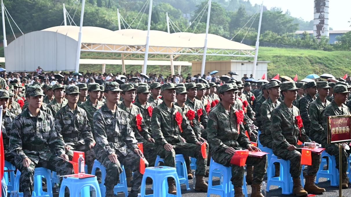 (新兵们身着戎装、精神抖擞,展现出良好的精神风貌)