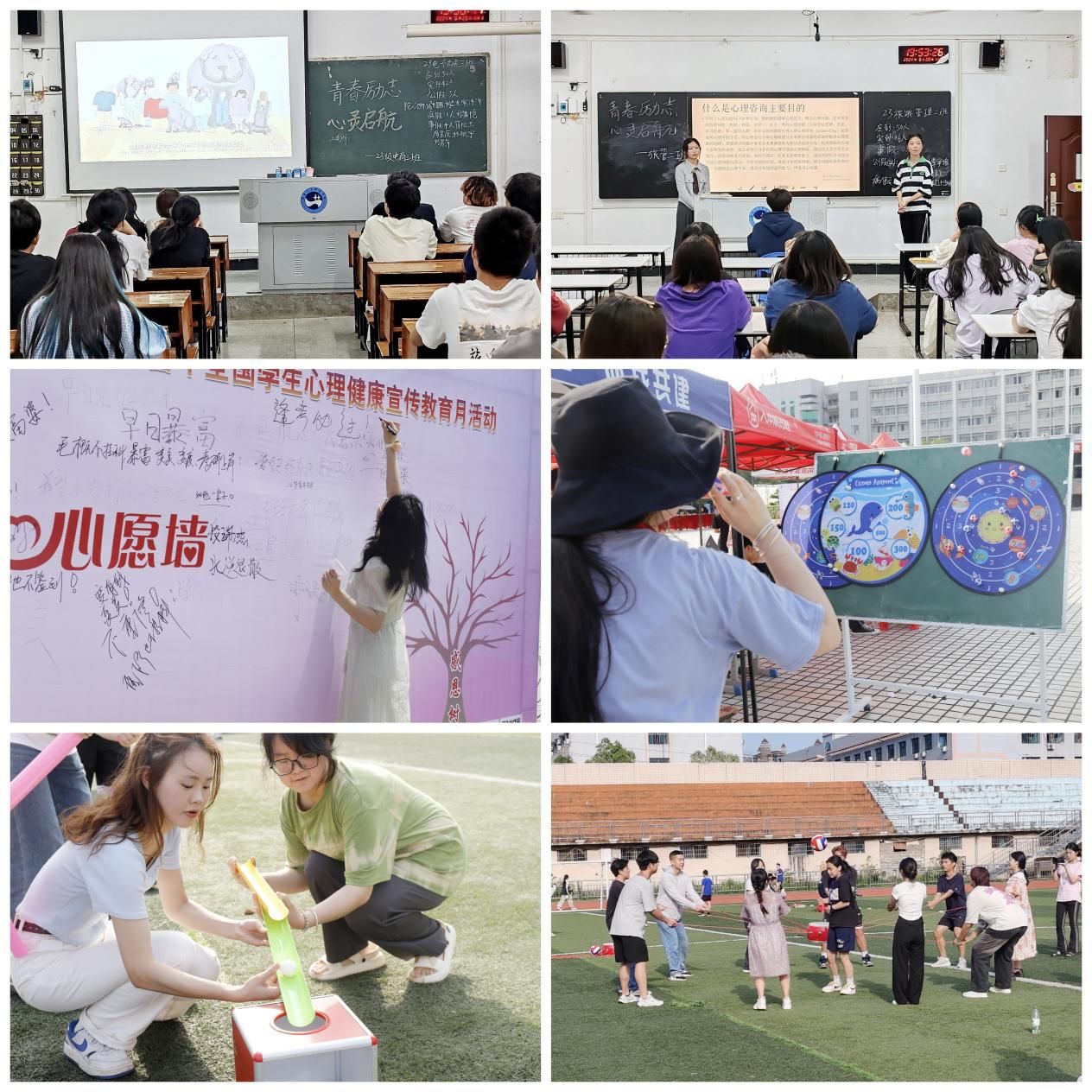 今年会秉承五育并举促心理健康的理念,开展了形式多样的心理健康教育活动。一是将育德与育心结合,举行了“成长赋能 从心开始”主题升旗仪式暨今年会首个全国学生心理健康宣传教育月活动启动仪式;举行“优秀心理干部、优秀朋辈辅导员、活动获奖学生”的表彰仪式暨宣传教育月活动闭幕仪式。二是将育智与育心结合,开展了“智动人文”心理知识竞赛,“我的心晴故事”征文比赛等。三是将育美与育心结合,开展了“以美滋心田 以美润心灵”开放日活动,“彩绘情绪,拥抱心灵”绘画情绪表情包活动等。四是将育体与育心结合,举办了“以体强身魄,以动润心灵”趣味运动会,设置了“鼓动人心”、“背夹球”、“十人九足”等系列项目,让学生在活动身体的同时愉悦心情、体验团队合作精神,促进个体身心和谐发展。五是多渠道、多形式普及心理健康知识,举办了“压砺逐梦,力动未来”心理健康游园会;“青春励志,心灵启航”主题班会;“砺梦人文”校园心理情景剧剧本大赛;线上线下发放九个主题的心理健康知识宣传手册;制作宣传展板,向师生们展示心理健康教育中心师资团队、教育功能、场地等。