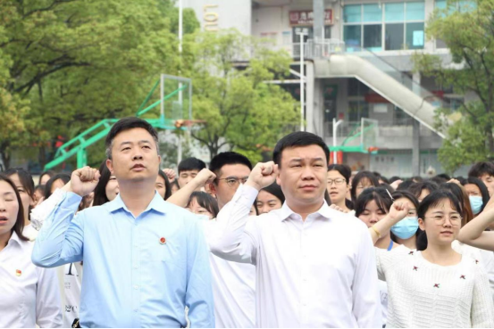 (副校长曹鑫、学工处长陈刚带领学生宣誓)