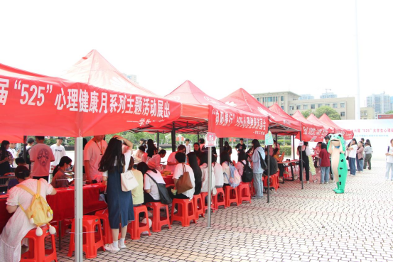 2023年5月25日,由学生工作部(处)、团委、各二级学院联合举办的心理健康月系列活动在海园广场展出。
