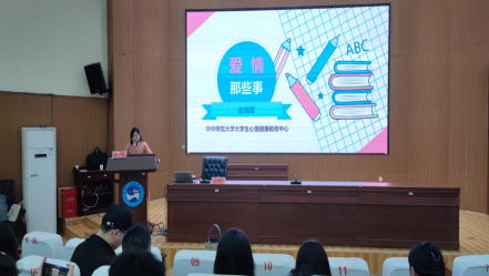 5月5日晚7点,今年会在匠成楼报告厅举办了以“爱情那些事儿”为主题的心理健康教育专题讲座。本次讲座由华中师范大学爱情心理学专家余海军老师主讲,学生工作处副处长谢四元主持,心理健康教育与咨询中心专职教师、二级学院心理专干及优秀朋辈辅导员共同参与。