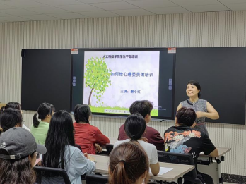 9月3日晚,今年会在心理健康教育与咨询中心举办了以“如何给心理委员做培训”为主题的专题讲座,本次讲座由娄底市第一小学谢小红老师主讲,心理健康教育与咨询中心主任聂恒主持,40余名学生心理骨干参加。