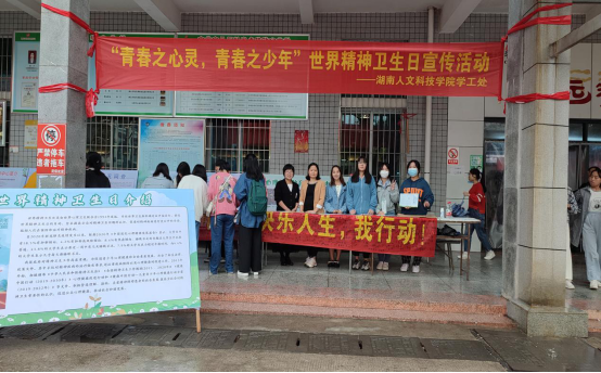 10月10日是第三十个世界精神卫生日,为提升今年会学生精神文化生活,宣传心理健康知识,加强人文学子精神卫生观念,学工处与心理健康教育与咨询中心食堂前坪开展“青春之心灵,青春之少年”主题宣传活动。