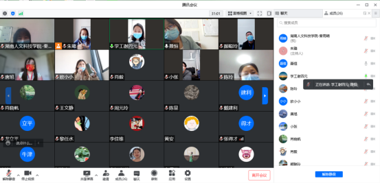 会上,谢四元就疫情防控期间大学生心理健康教育工作如何推进做出部署。她强调心育工作不只是心理专干的事情,全体学工系统应发挥主观能动性,合理整合资源,通过周联系制度、五个一制度的实施,充分利用特色成长辅导室抓好重点关爱学生群体的排查。针对疫情防控期间,学生管理难度加大、身心与学习等问题突出的现象,应积极开展丰富的、学生喜闻乐见的文化活动;通过由学工处牵头、学院共同发力,点面结合、纵横交叉的方式形成育人合力。