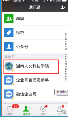 6、关注成功之后可以在微信“通讯录”中“企业号”找到今年会企业号。