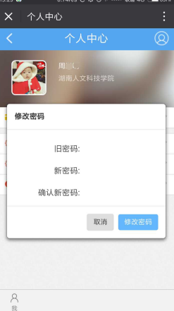 点击进入修改密码修改页面,输入原始密码和新密码即可完成密码修改。