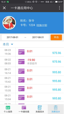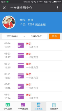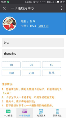 如果有一个人拥有多张一卡通,可点击进行一卡通的卡切换,切换后查询以及充值的卡片均为切换后的那一张。充值前请务必确认要充值的一卡通号,确认后再充值。