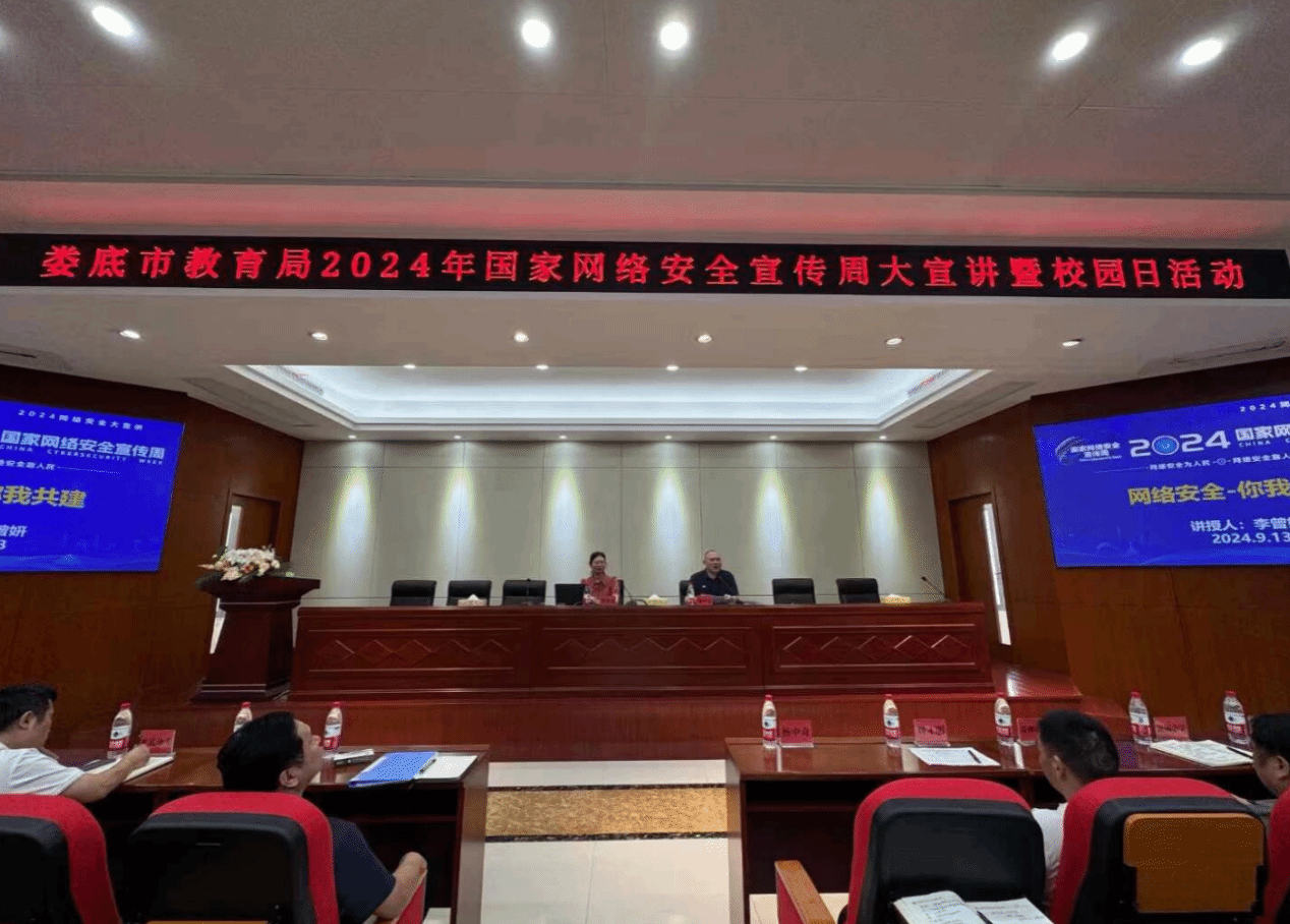 学校信息中心主任与信息学院信息安全专家受邀参加 市国家网络安全宣传周启动仪式,共同见证此次全市网络安全盛事的开启。同时,信息学院网络安全专家彭智朝、李曾妍、李伟民化身宣讲老师,投身于 2024 年娄底市教育系统网络安全进校园活动,将专业知识传递给广大师生群体。