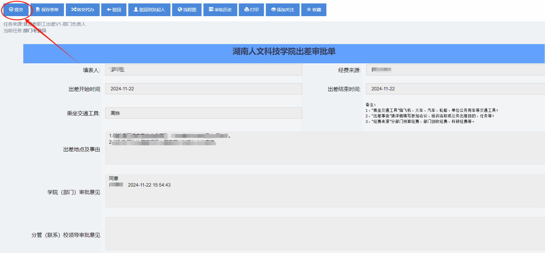 四、点开“我审批的”待办事项,可以对待办事项进行“提交”“驳回”等操作。以“提交”操作为例: