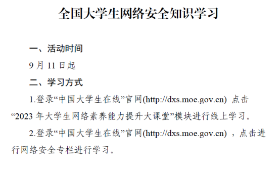 二、“中国大学生在线”学习网络安全知识(附件2),提高大学生网络素养。