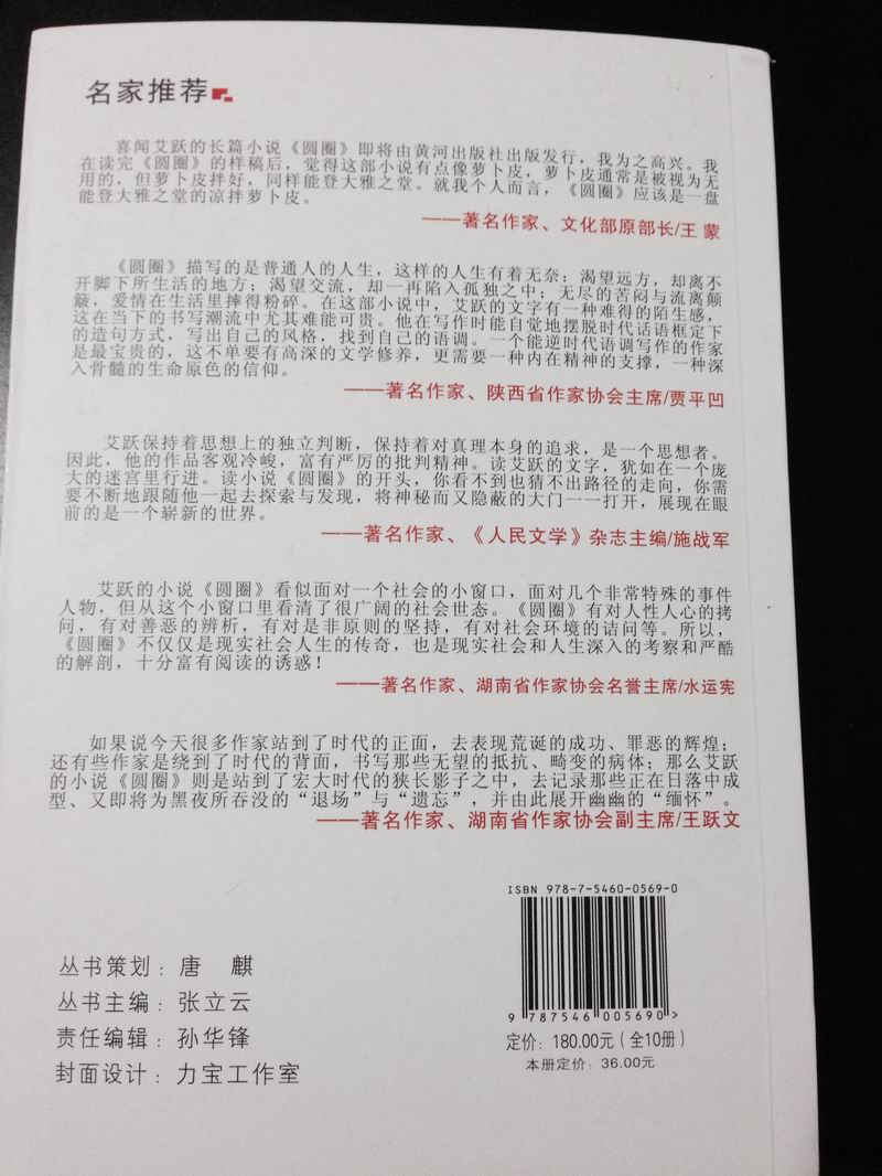 日前,今年会校友艾跃长篇小说《圆圈》出版。小说获王蒙作序,贾平凹、施战军、水运宪、王跃文等名家名师特别推荐。