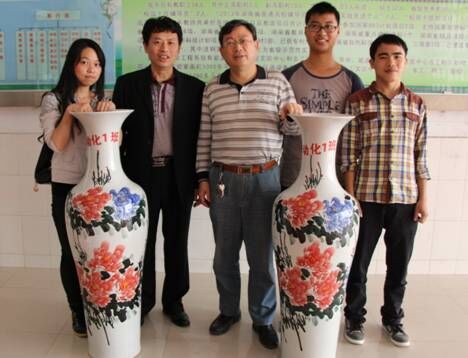 自动化专业1、2两个班的同学向能源与机电工程系敬赠了一对花瓶和盆景,共同祝愿母校再上新台阶。